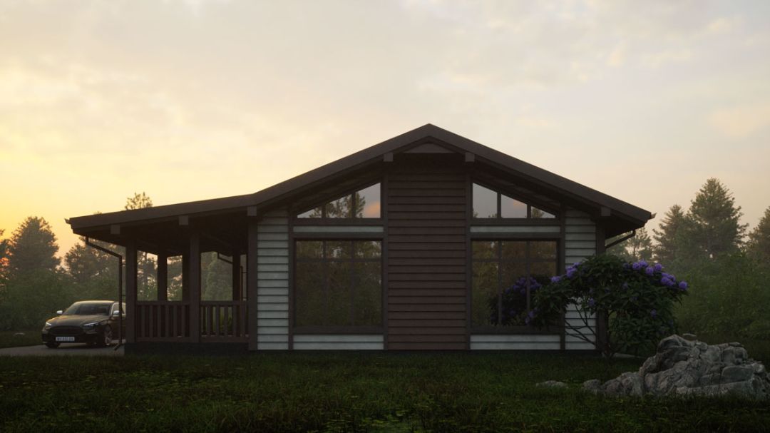Такой дом не устареет через пару сезонов. Он не спорит с участком, не требует сложного ухода и хорошо смотрится в загородной среде - рядом с садом, лесом, открытой лужайкой или небольшим семейным двором.